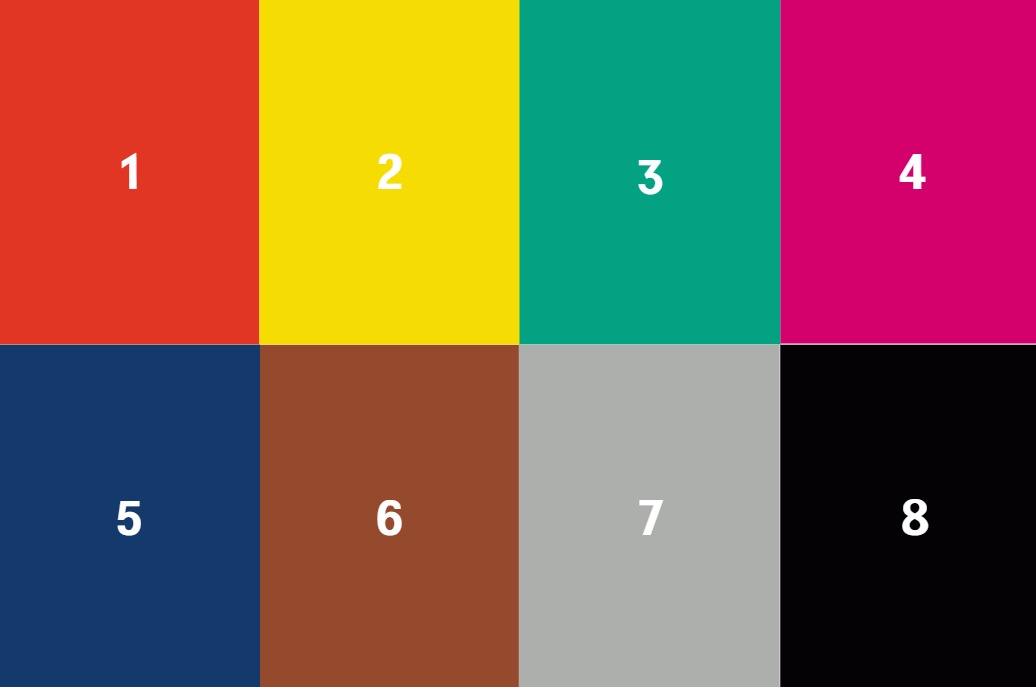 Расположите восемь цветов в порядке убывания личной симпатии: от наиболее приятного (№1) до наименее приятного (№8)